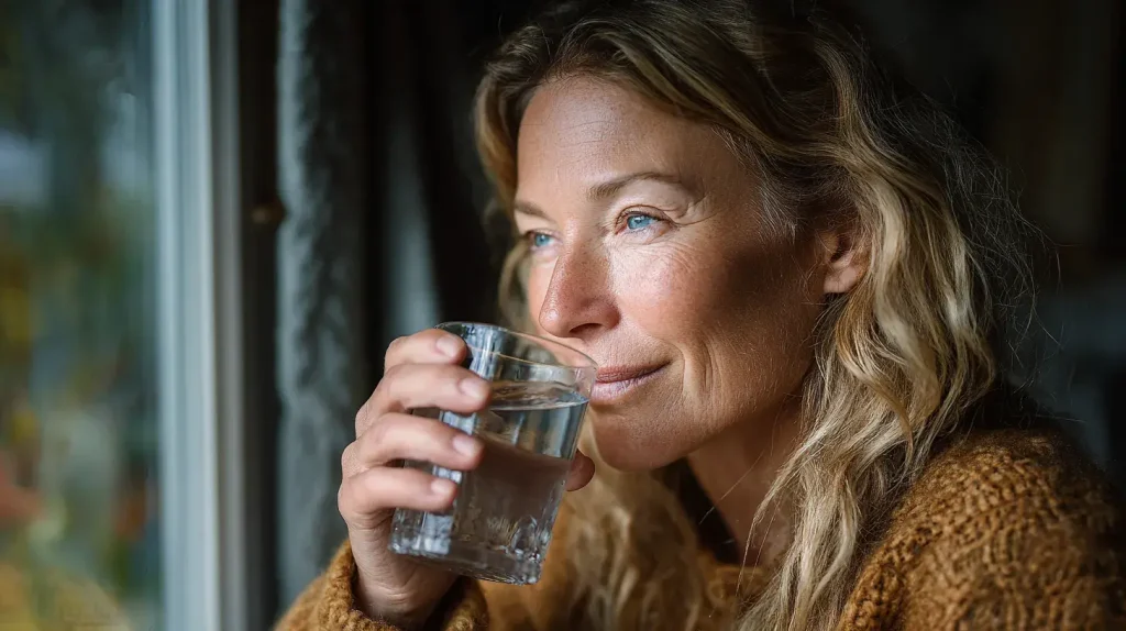 Une peau déshydratée devient rapidement plus terne, moins souple et les petites ridules peuvent être davantage visibles. L’eau consommée au quotidien ne constitue pas un soin cosmétique en soi, mais elle représente la base indispensable pour que les autres nutriments puissent exercer leur rôle.