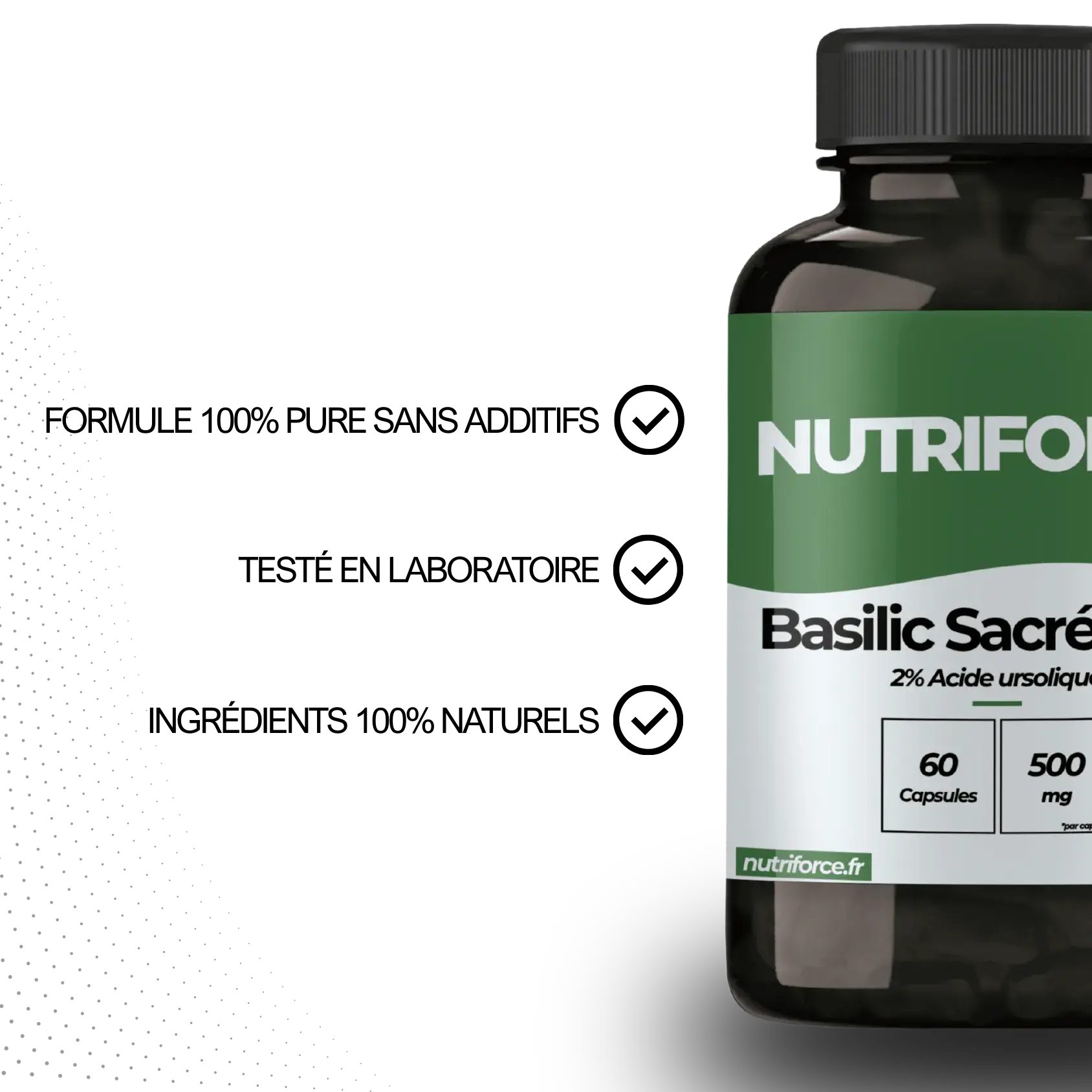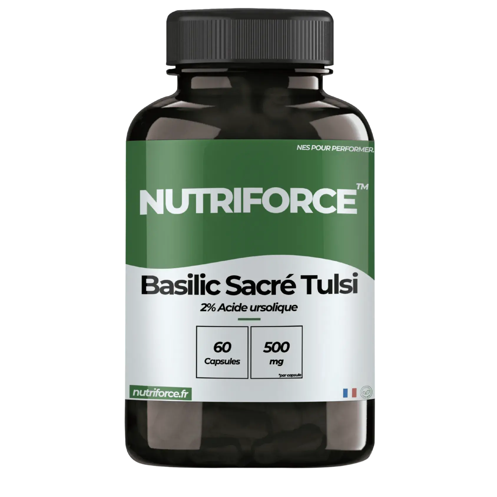 Basilic sacré Tulsi pure 500mg, gélatine végétale (capsule à base de cellulose)