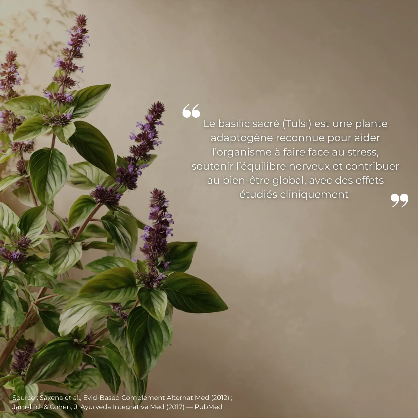 Le Tulsi est une plante adaptogène qui aide à réguler les niveaux de cortisol, l’hormone du stress.