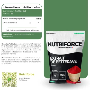 Permet de profiter des bienfaits de la betterave de manière plus pratique, un complément utile pour la congestion musculaire et les sportifs en général
