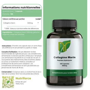 Le collagène marin hydrolysé est riche en acides aminés essentiels (glycine, hydroxyproline, proline), favorables à la régénération des cartilages et à la préservation de la mobilité articulaire. Il soutient le confort des personnes actives ou sujettes à l’usure du tissu conjonctif.