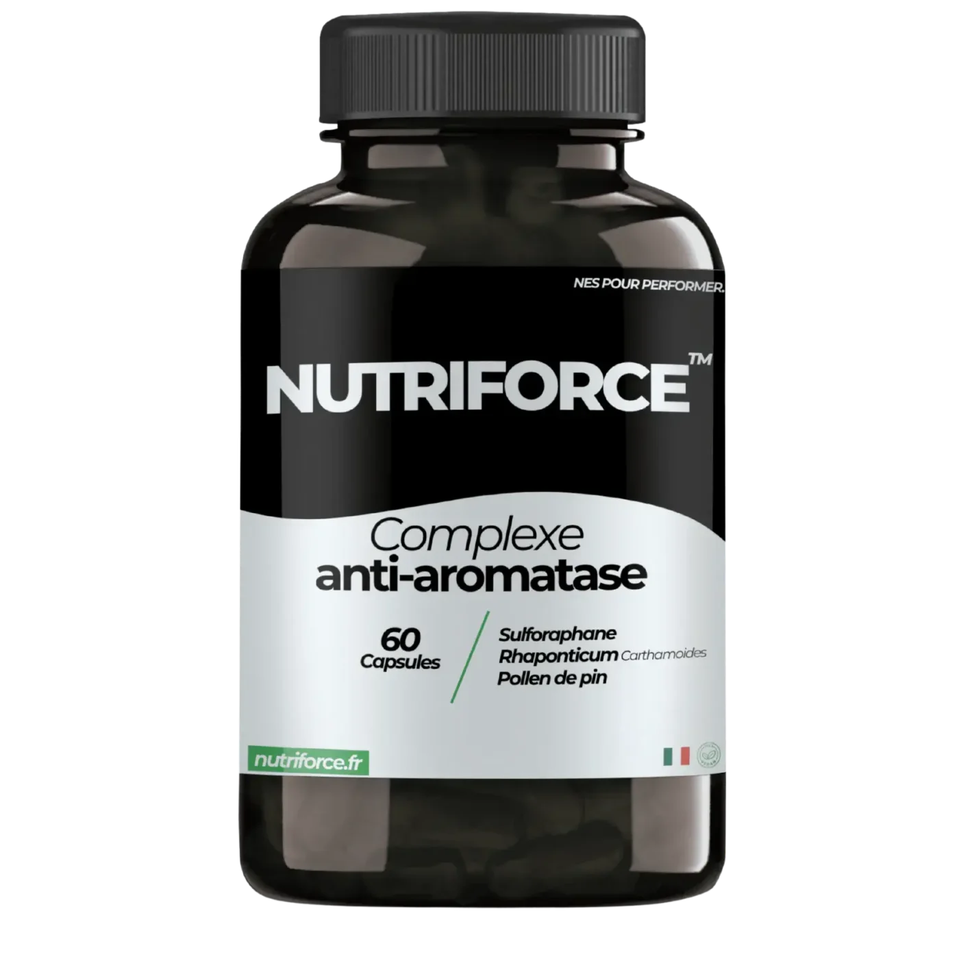 Le complexe anti-aromatase Nutriforce à été conçu pour vous aider à vous surpasser en limitant la conversion naturelle de testostérone en œstrogènes (hormone féminine). Composé de Rhaponticum Carthamoides, de pollen de pin, et de Sulforaphane, ce complexe augmente la testostérone, favorise la prise de masse musculaire et augmente la force de manière naturelle.