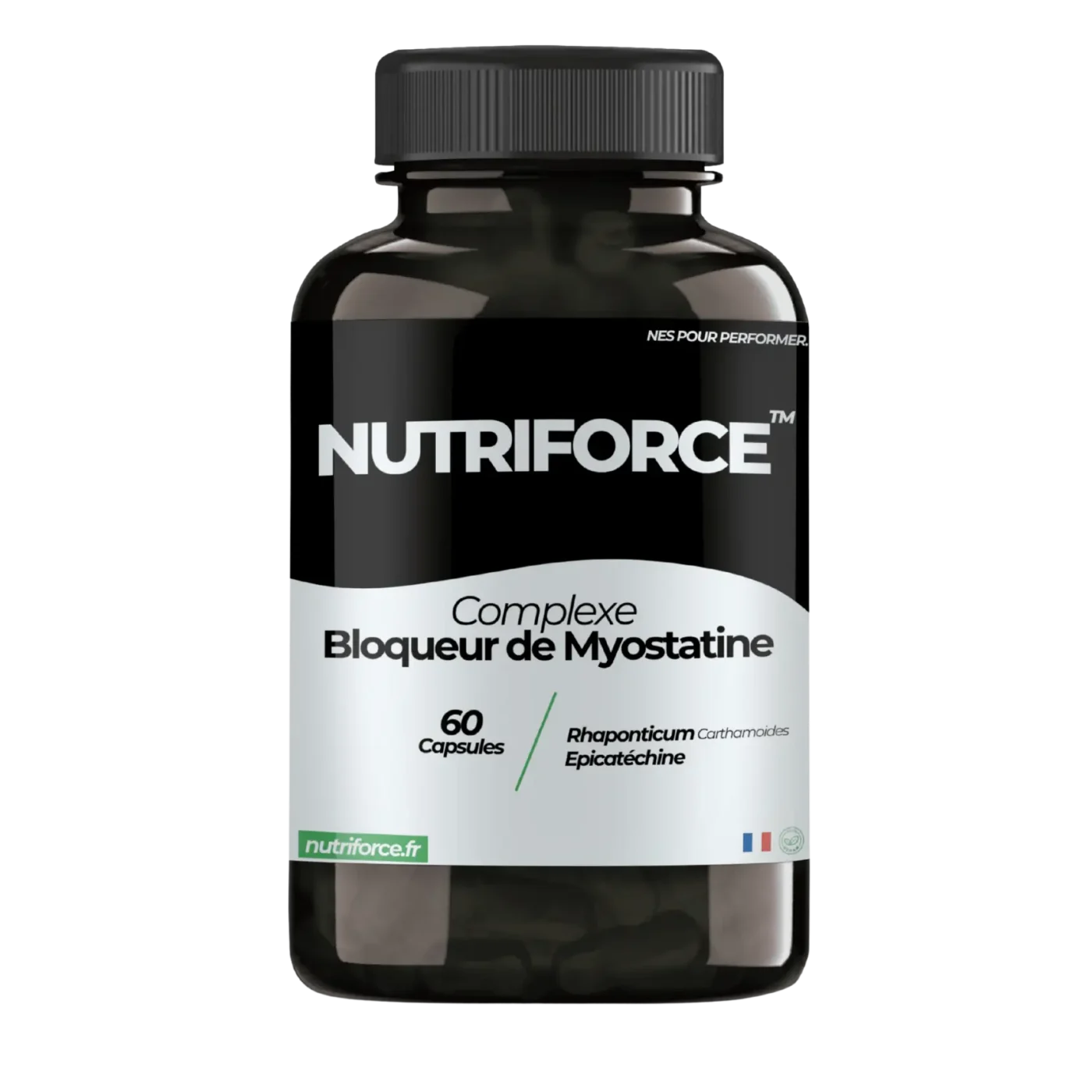 Le complexe bloqueur de myostatine Nutriforce à été conçu pour vous aider à dépasser vos limites en musculation. Composé d’une synergie de deux bloqueurs de myostatine naturels, la Rhaponticum Carthamoides et l’Épicatéchine, ce complexe augmente la masse musculaire et accélère la perte de graisses.