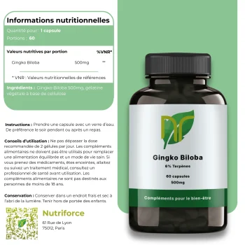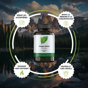 En stimulant la circulation cérébrale, le Ginkgo biloba soutient les fonctions cognitives et la clarté mentale.