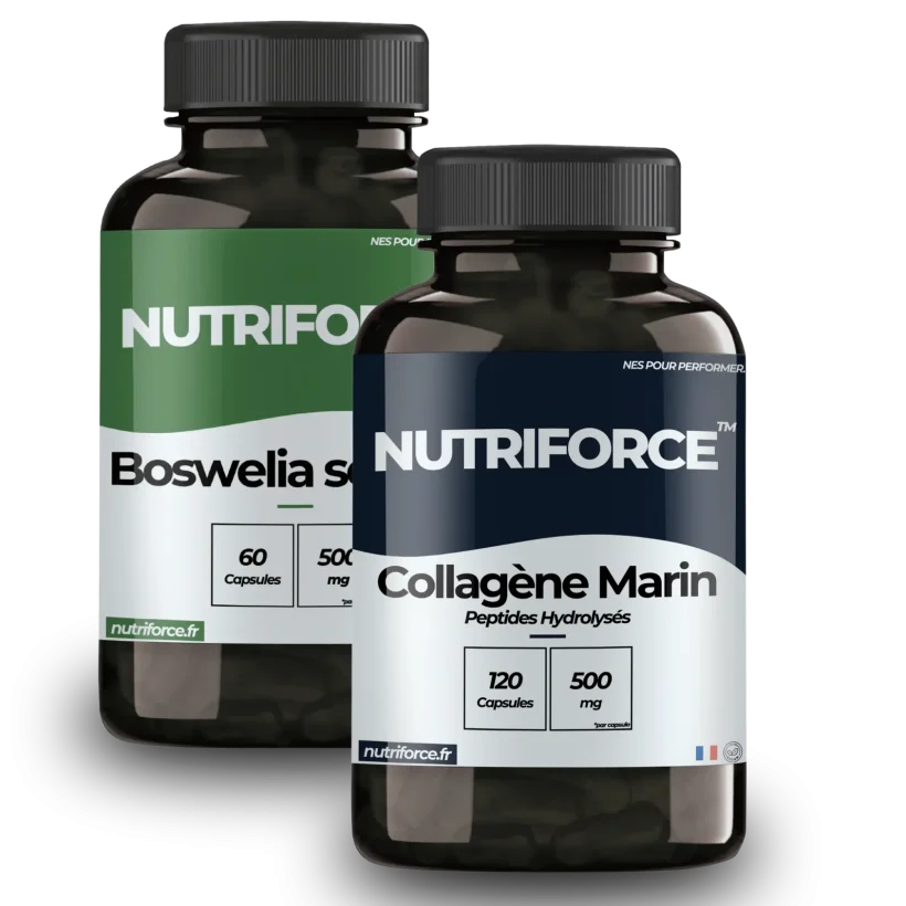 Notre pack associe la boswellia serrata au collagène marin, composant essentiel de vos tendons. Cette synergie agit directement sur l’inflammation tout en favorisant la régénération des tissus endommagés.