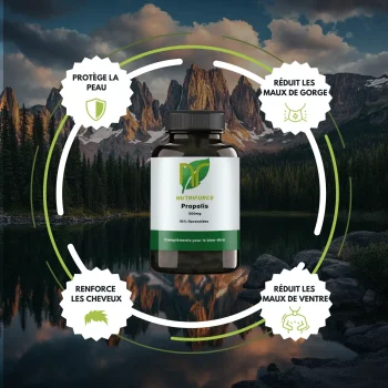 La propolis possède des propriétés antimicrobiennes et anti-inflammatoires puissantes qui aident à calmer les irritations et à réduire l’inconfort en cas de gorge sèche ou douloureuse. Elle agit comme un bouclier naturel contre les agents pathogènes.
