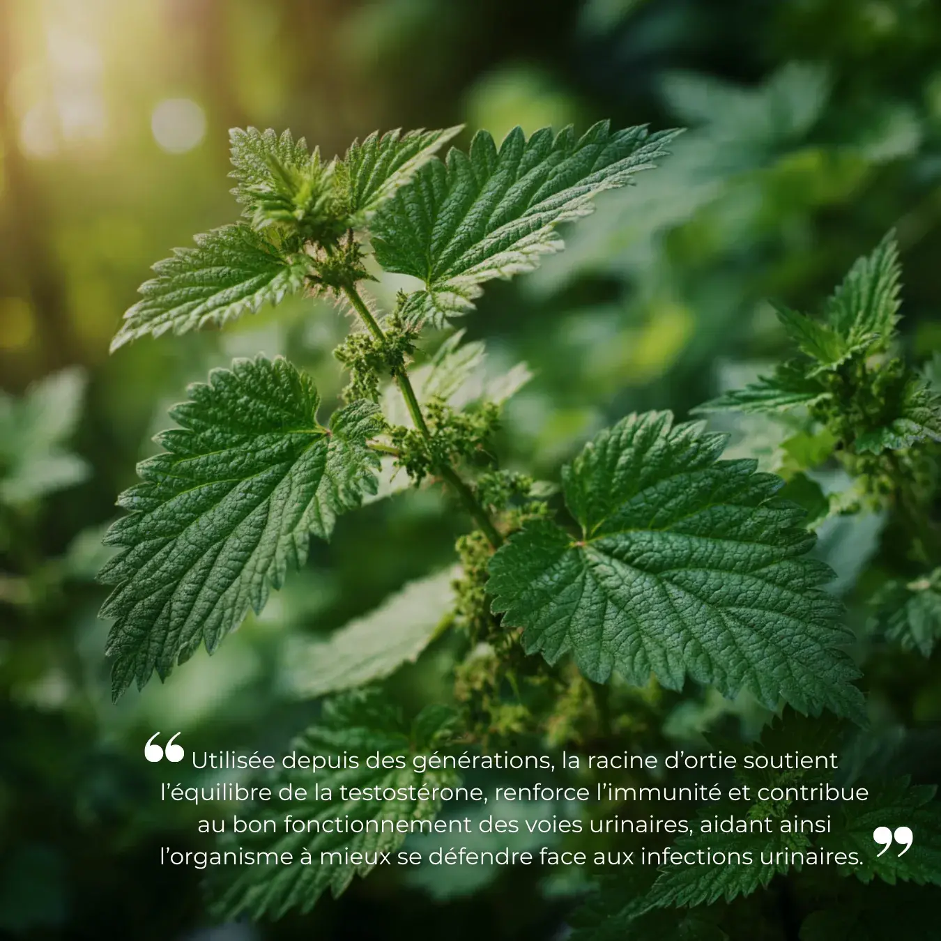 La racine d’ortie concentre des phytostérols qui inhibent la 5-alpha-réductase et l’aromatase, deux enzymes responsables de la croissance excessive du tissu prostatique.