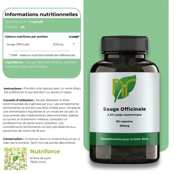 Des études cliniques ont démontré que la sauge améliore la mémoire à court terme et la capacité d’attention. Ses composés bioactifs traversent la barrière hémato-encéphalique et protègent les neurones tout en favorisant la transmission cérébrale.