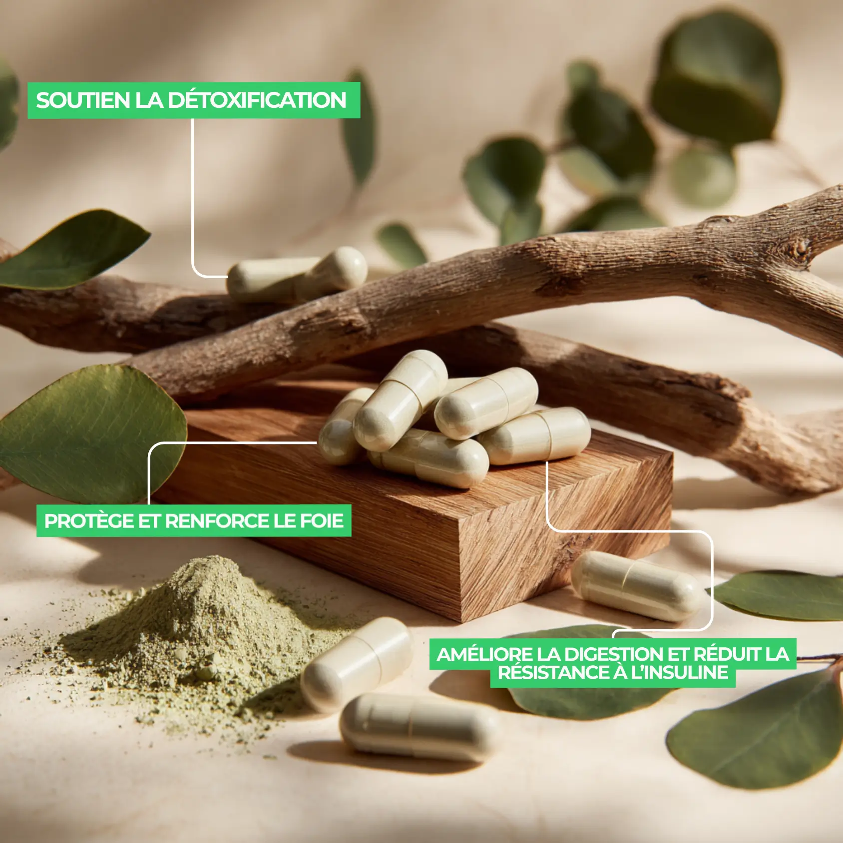 Capsules pratiques à avaler, absorption améliorée des nutriments et moins de coups de barre après les repas.
