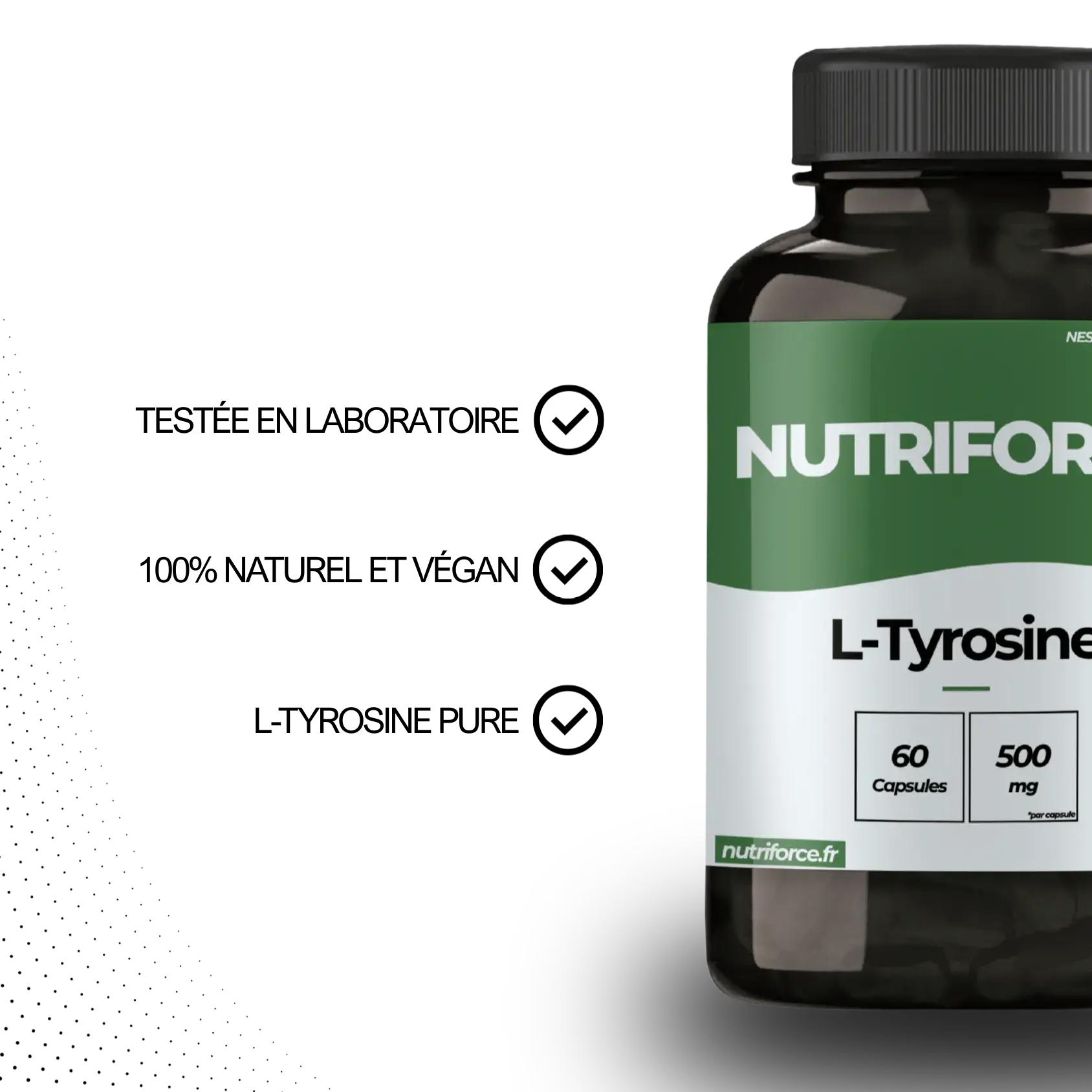 La tyrosine Nutriforce est disponible sous forme de gélules et capsules ou sous forme de poudre pour que vous puissiez choisir en fonction de vos préférences personnelles. La poudre n’a pas un goût très agréable et elle peut être complexe à doser sans balance. Les gélules sont plus pratiques et simples et peuvent être transportées facilement.
